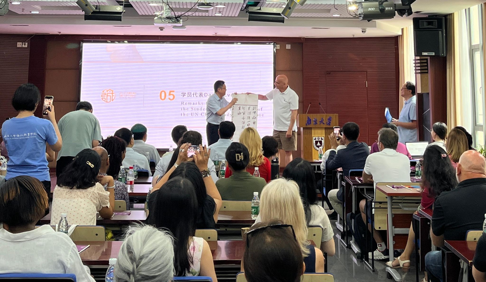 During the ceremony, all attendees watched a video reviewing the twenty-year history of the programme at NJU and a video produced by the Overseas Education College titled "Come Study at NJU".