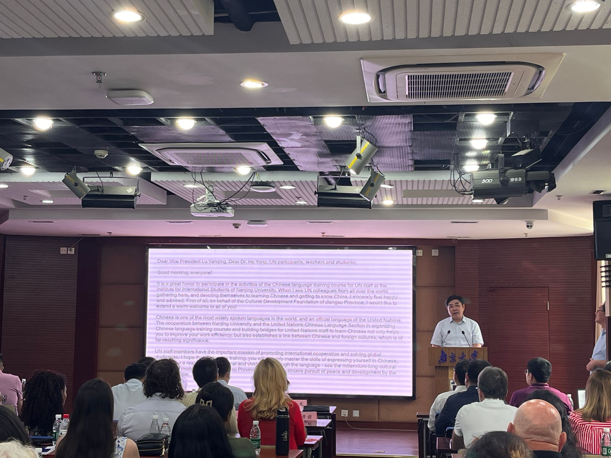 Lu Yanqing extended a warm welcome to all participants. He recalled the close historical ties between NJU and the UN, noting that many alumni have either held important leadership positions in the UN and its subsidiary organizations or have been drafters and translators of important UN documents in Chinese. NJU has also awarded honorary doctoral degrees to former UN Secretaries-General Boutros Boutros-Ghali and Ban Ki-moon. He emphasized that NJU highly values and cherishes this historical connection. The UN China Study Programme represents a further deepening and development of this relationship. After more than 20 years of joint efforts, this program has become a beautiful highlight of the UN's multilingual culture. He expressed hope that participants would improve their Chinese language skills, deepen their understanding of China, practice the UN spirit of "peace, friendship, and cooperation," and enhance their professional development through this programme.