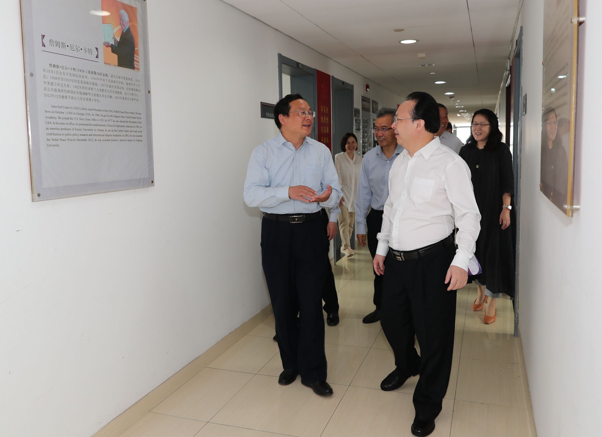 On the morning of September 26, Tan Tieniu, Secretary of CPC NJU Committee, visited Yangzhou Building (North Administrative Building) and engaged in friendly exchanges with the personnel working there. Deputy Secretary Yang Zhong and Executive Vice President Tan Zhemin accompanied him during the visit.