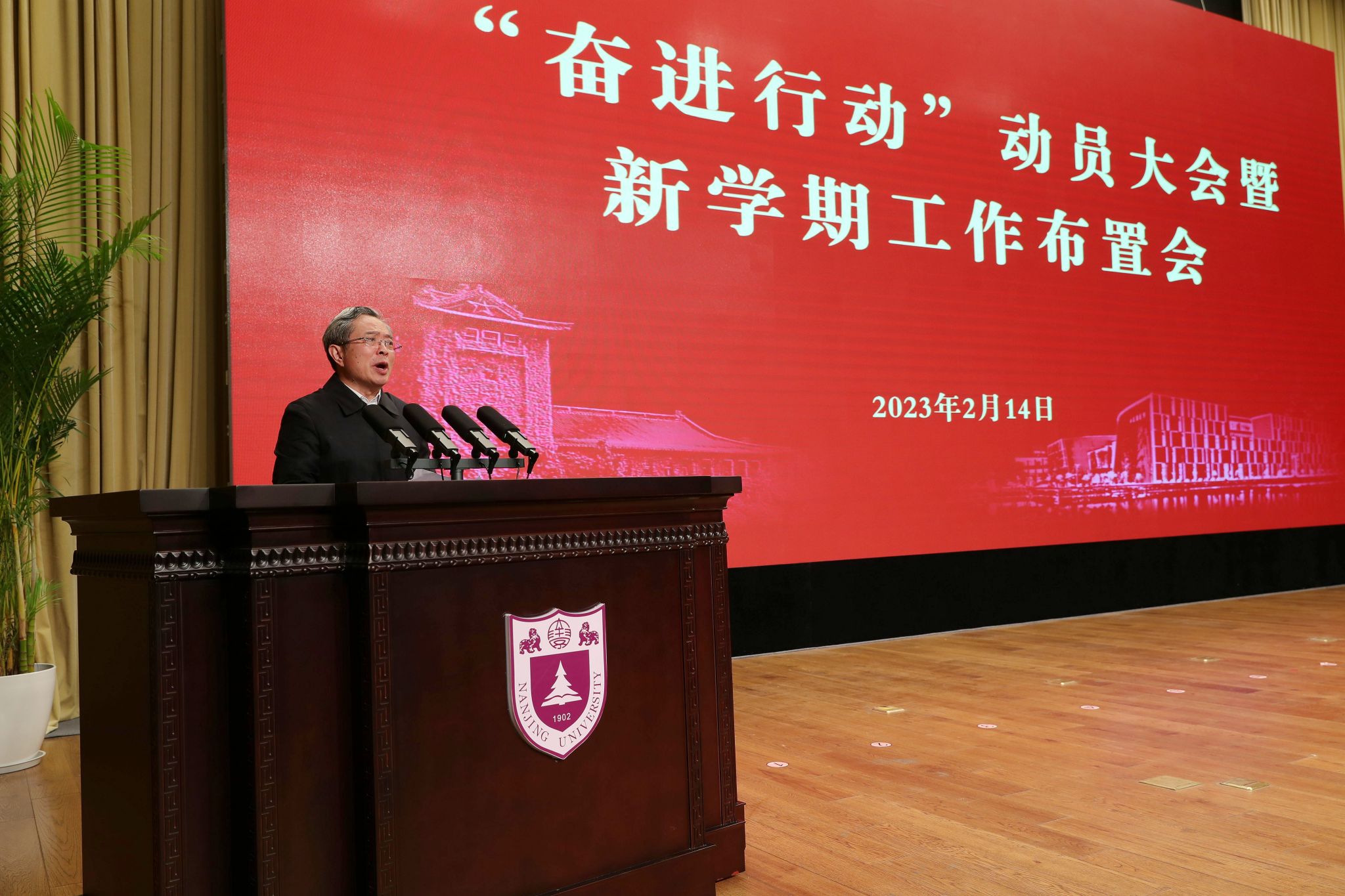 Lyu Jian delivered a speech and made arrangements for administration work this term. He pointed out that the history of Nanjing University epitomizes the development of higher education in modern China, and the University always puts focus on the combination of student cultivation, university education and the era. NJU never forgets its original aspiration as a university, and always follows the trend of the changing times. In order to find the right course of development with the characteristics of NJU, it is imperative to uphold fundamental principles and break new ground, to take steady steps, and to plan things as a whole.