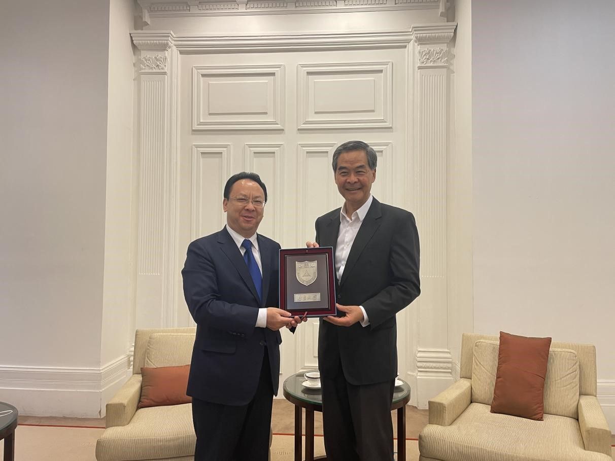 On the morning of April 13, Tan Tieniu and his delegation visited Leung Chun-ying, the Vice Chairman of the National Committee of the CPPCC and former Chief Executive of the Hong Kong SAR. During the meeting, Tan Tieniu introduced NJU’s recent development plans , and they further discussed how to promote exchanges and cooperation between NJU and universities and various sectors in Hong Kong. Tan Tieniu extended a warm invitation to Leung Chun-ying to visit NJU, and Leung Chun-ying happily accepted it.