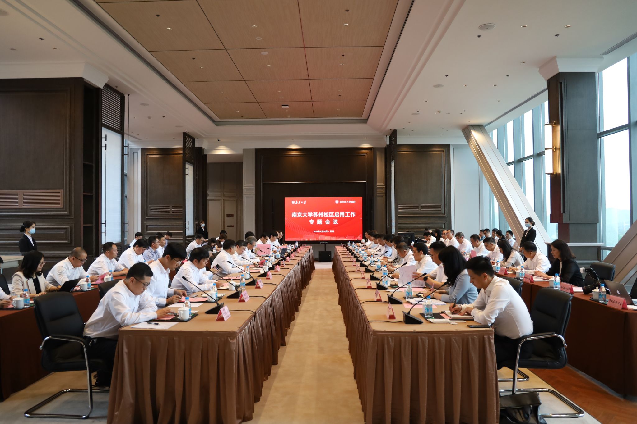 On June 30, NJU and Suzhou City hold a meeting to discuss the preparations for the official launch of NJU Suzhou campus. The meeting was held at the International Conference Center on Suzhou campus. Tan Zhemin, Academician of the Chinese Academy of Sciences and President of NJU, and Wu Qingwen, the Deputy Party Secretary and Mayor of Suzhou, were both presented at the meeting. Yu Yu, the Secretary General of the Suzhou Municipal Government, hosted the meeting.
