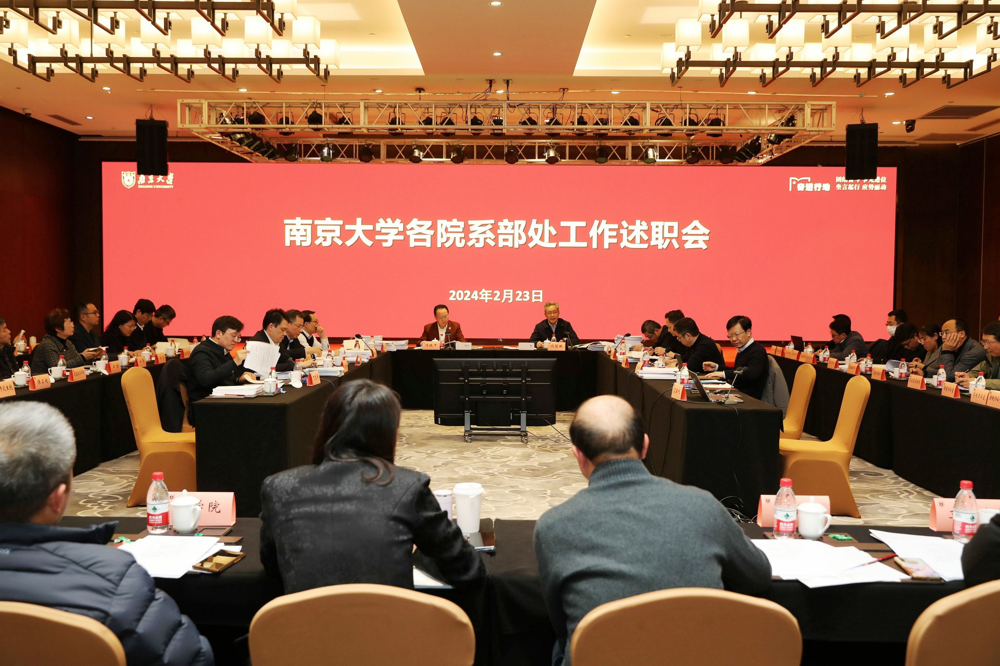On February 22 and 23, 2024, NJU held a meeting to assess the annual work in 2023 and discuss plans for 2024. Representatives from 91 faculties and administrative units presented summaries of their work in 2023 and outlined their plans for 2024. Tan Tieniu, Secretary of the CPC NJU Committee, and Tan Zhemin, President of NJU, attended the meeting. The meeting was chaired by Yang Zhong, Executive Secretary of the CPC NJU Committee.