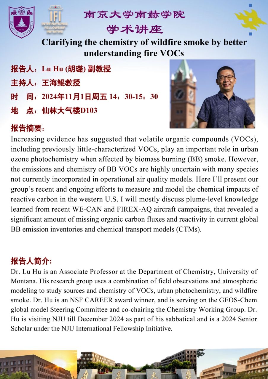 Speaker: Dr. Lu Hu, Associate Professor at the Department of Chemistry, University of Montana