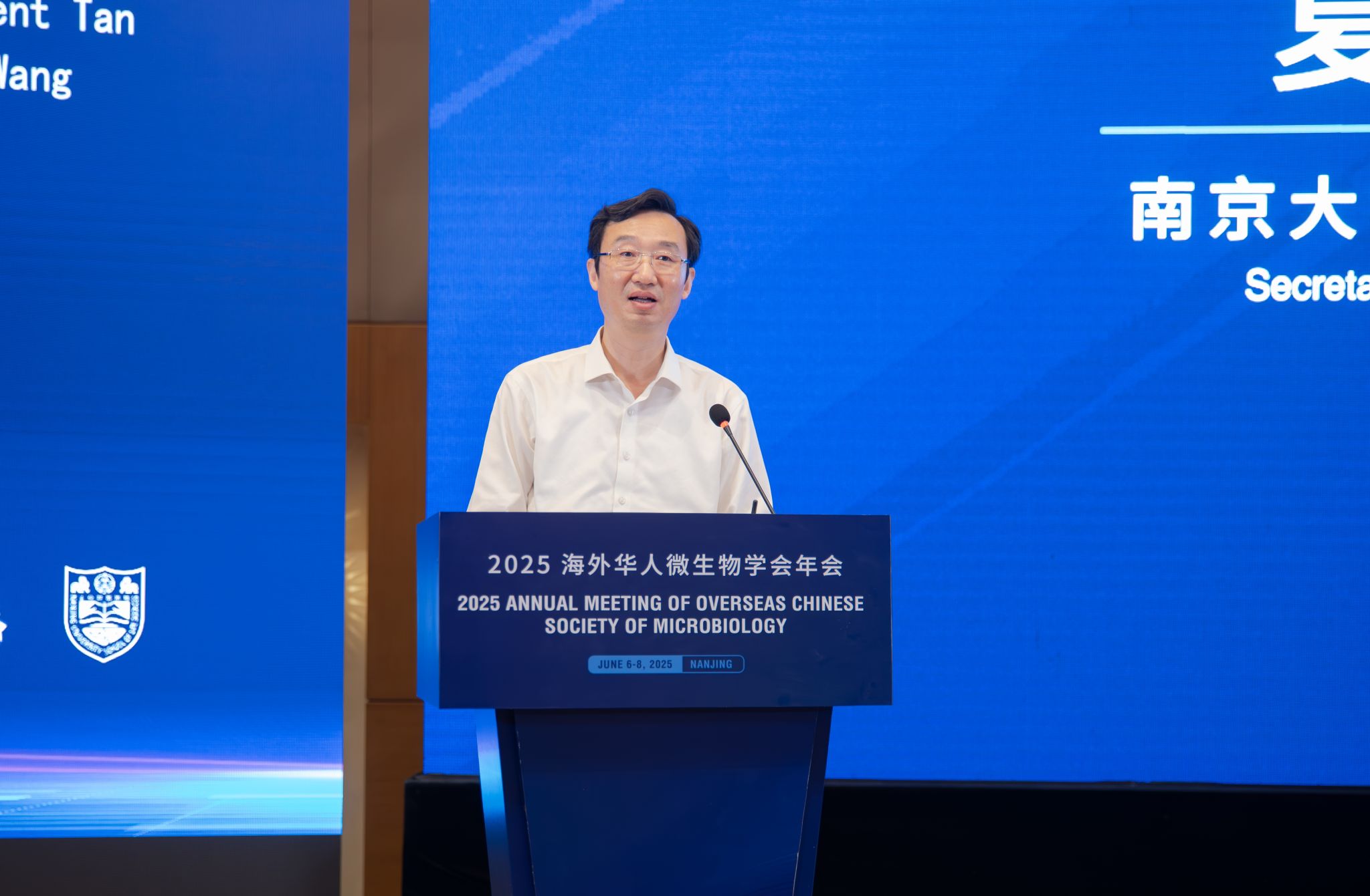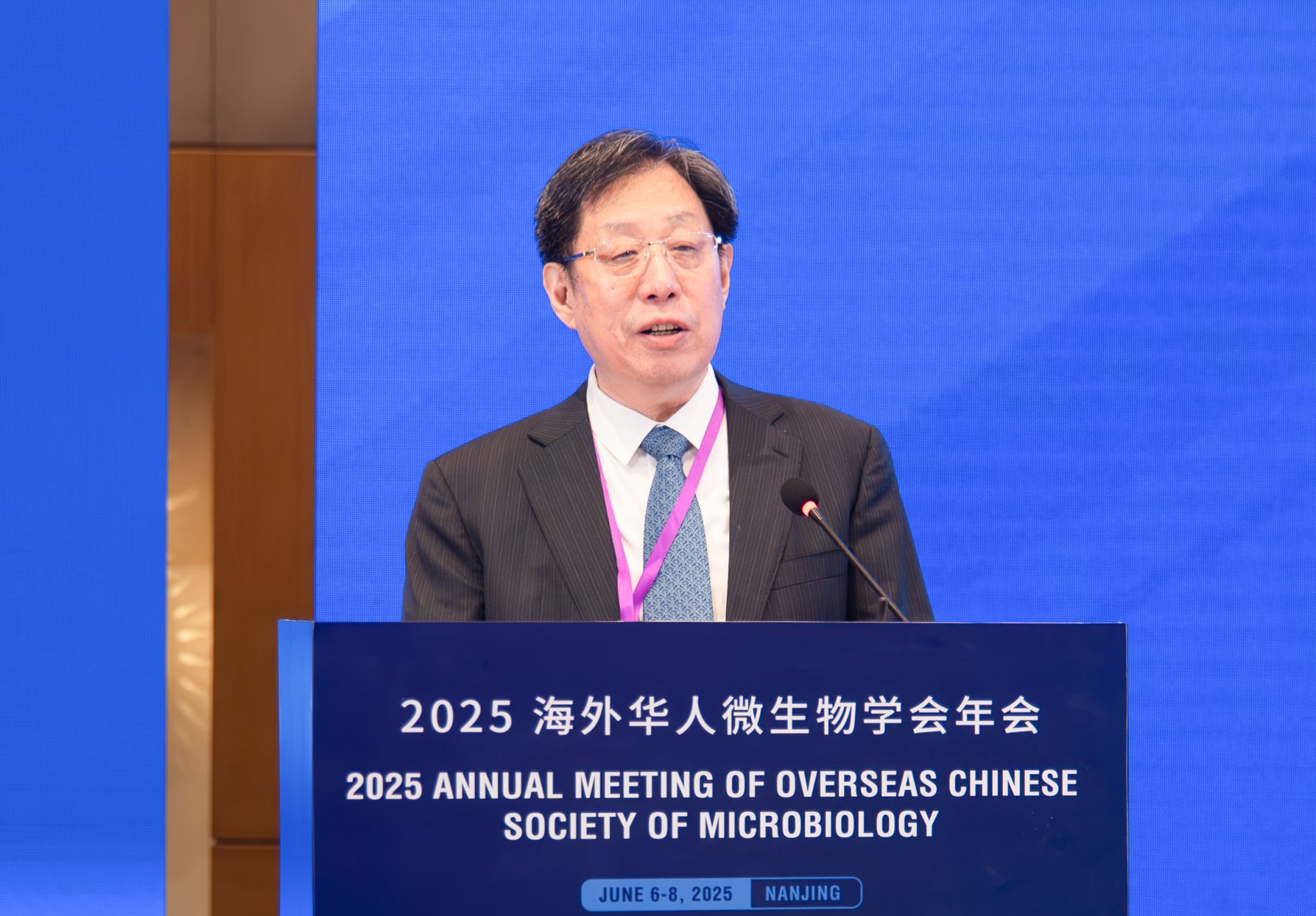 From June 7 to 8, the 2025 Annual Meeting of Overseas Chinese Society of Microbiology was held in Nanjing. The theme of this conference was "The Impact of Microorganisms on Health and Environment," focusing on international scientific frontiers, building a platform for academic exchange and cooperation between China and foreign countries, and promoting the integration and development of global microbiology and related disciplines. Tan Zhemin, President of Nanjing University and Academician of the Chinese Academy of Sciences (CAS), attended and addressed at the opening ceremony.