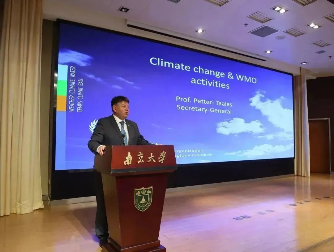 After the meeting, Prof. TAALAS made an academic report on the theme of “Climate Change and WMO activities” at the university library lecture hall. The delegation then visited the Station for Observing Regional Processes of the Earth System (SORPES) at the School of Atmospheric Sciences.