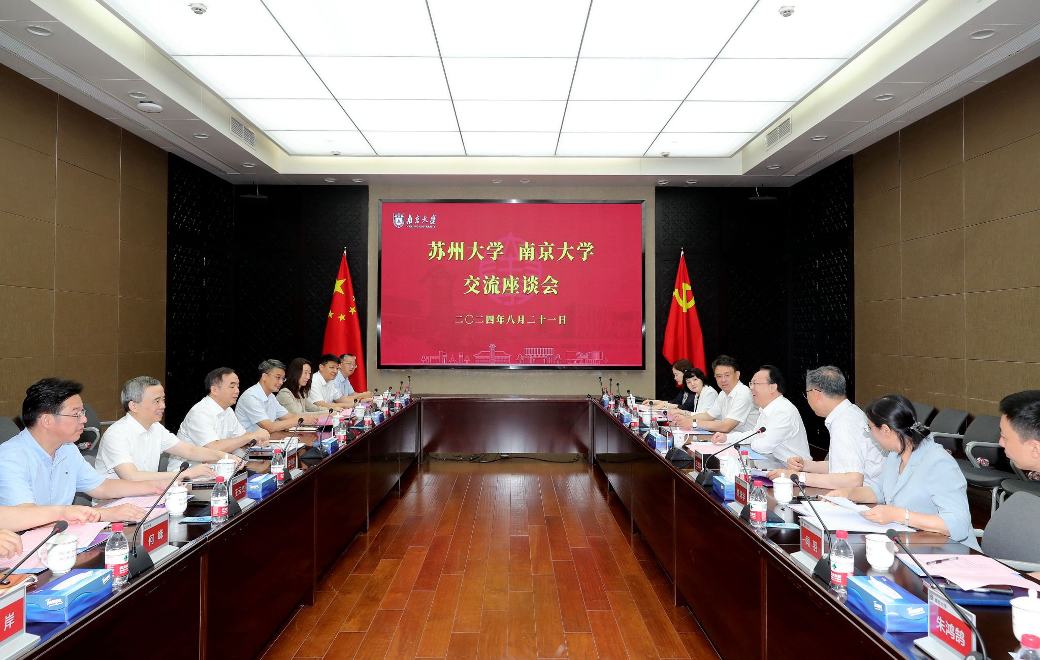 8月21日,苏州大学党委书记张晓宏率学校党政代表团来凯发k8官网调研。凯发k8官网党委书记、中国科学院院士谭铁牛在仙林校区会见了张晓宏一行。双方就干部队伍建设、人才队伍建设、资源拓展等调研主题进行交流座谈。