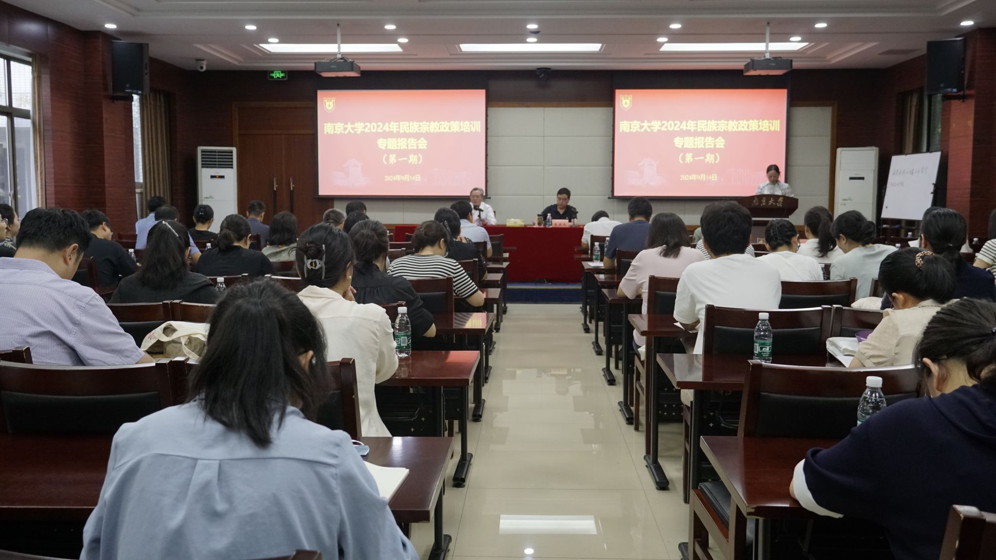为深入学习贯彻习近平总书记关于加强和改进民族工作的重要思想、关于宗教工作的重要论述及相关指示批示精神,进一步提高学校统一战线工作队伍的政策理论和法律、法规知识水平,9月14日,我校在鼓楼校区举办2024年民族宗教政策培训专题报告会,邀请江苏省民族宗教事务委员会副主任、党组成员朱亚文作专题辅导。校党委常务副书记杨忠出席报告会并致辞。报告会由党委统战部常务副部长罗萍主持。