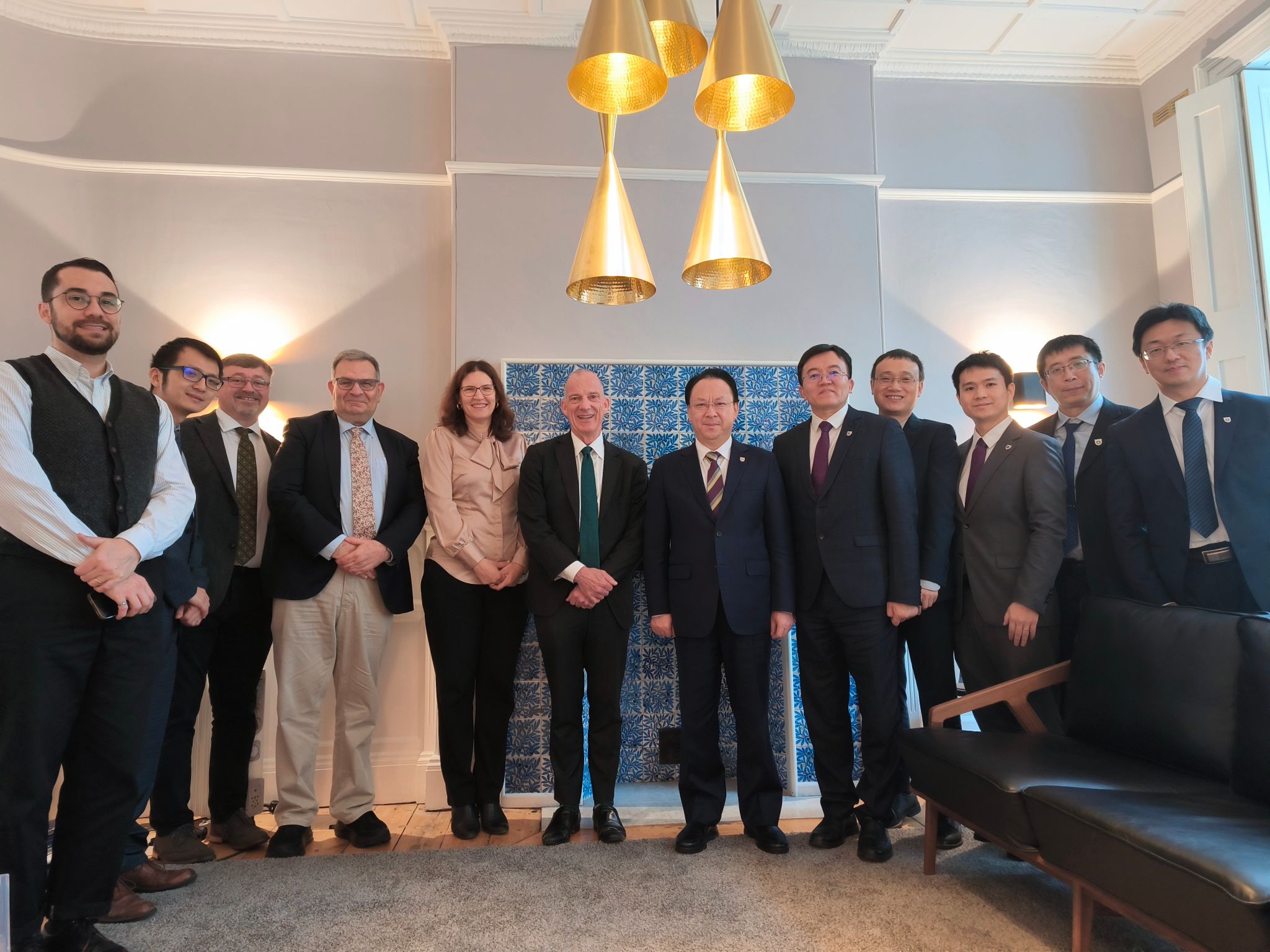 代表团访问了伦敦大学学院并会见校长Michael Spence教授。双方就签署校际合作协议、深化两校合作达成共识,未来拟通过联合科研项目和设立种子基金等形式加强在医学、数学、化学工程、物质科学以及商学等方面的务实合作,期望通过资源共享与互补,推动双方合作共赢。此外,双方还就开展联合教学、青年学者交流及管理人员培训等项目进行了深入探讨,旨在通过多元化的合作渠道,构建长期稳定的合作关系。
