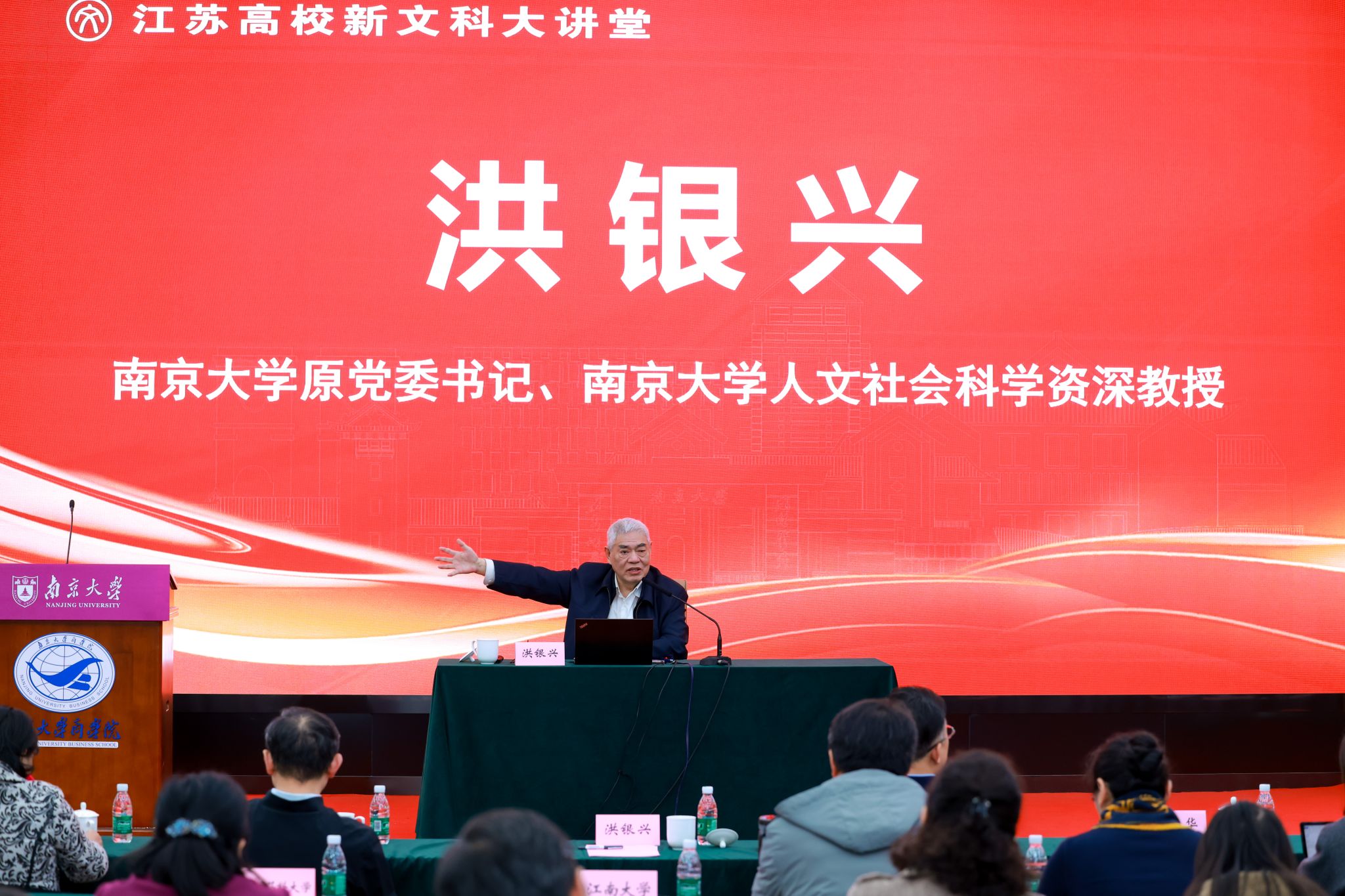 12月3日,第二届江苏高校新文科大讲堂在凯发k8官网鼓楼校区开讲。本次新文科大讲堂主讲人为凯发k8官网原党委书记、人文社会科学资深教授洪银兴。江苏省教育厅副厅长杨树兵、凯发k8官网副校长周志华出席活动。江苏省教育厅高教处处长徐庆主持活动。