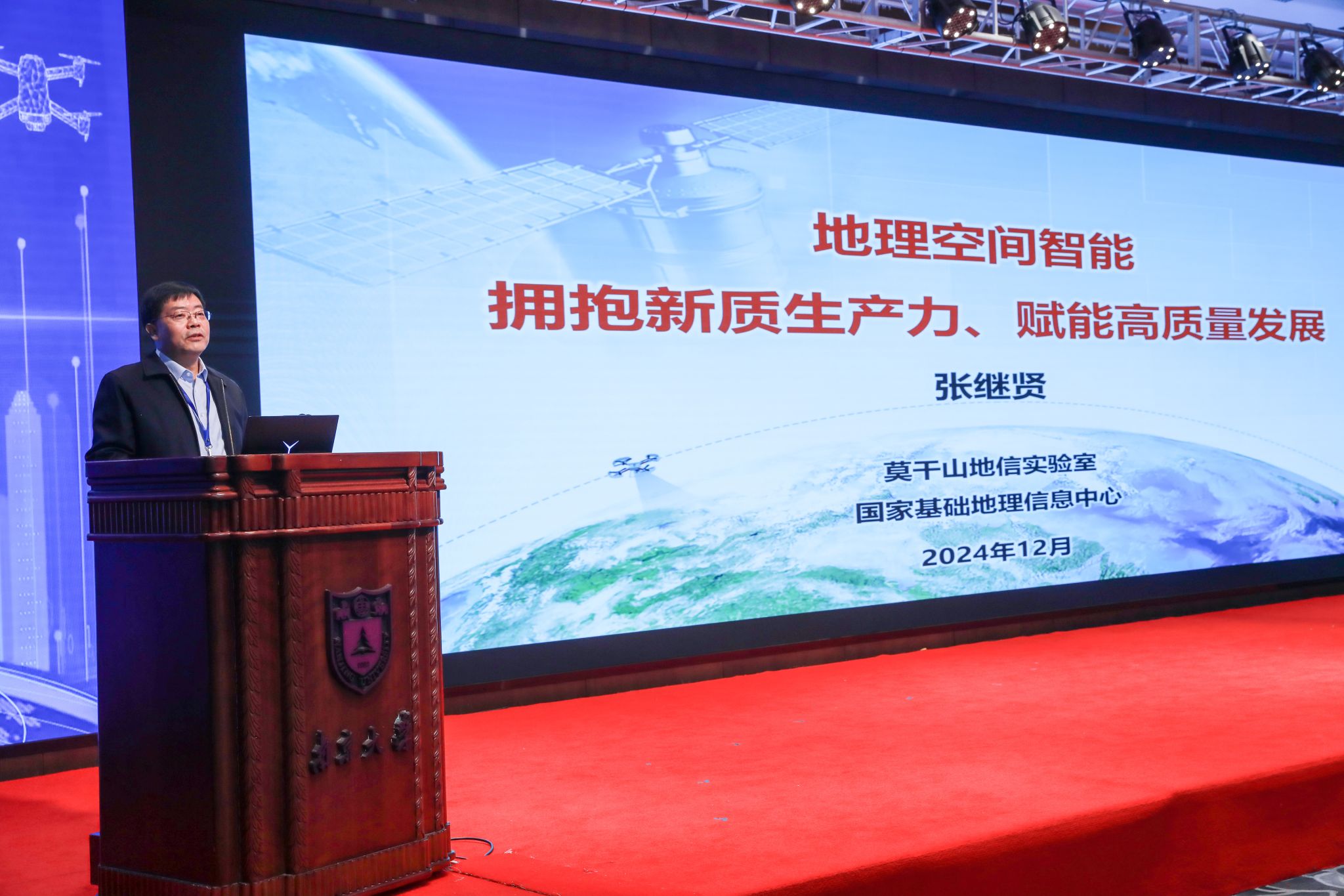 张继贤以《地理空间智能:拥抱新质生产力,赋能高质量发展》为题,深入探讨了地理空间智能技术的发展机遇和应用前景。他指出,“在人工智能引领的新一轮科技革命中,地理空间智能是推动测绘地理信息行业跨越式发展的核心力量。”张继贤从理论创新、技术演进和应用场景三个层面展开,介绍了“空间-时间-语义”三位一体的技术特性,以及地理空间大模型在实际场景中的探索应用。他还结合卫片监测、城市治理、数据治理等案例,阐述了智能体在国土资源管理中的重要作用,并对未来的行业发展方向提出独到的见解。