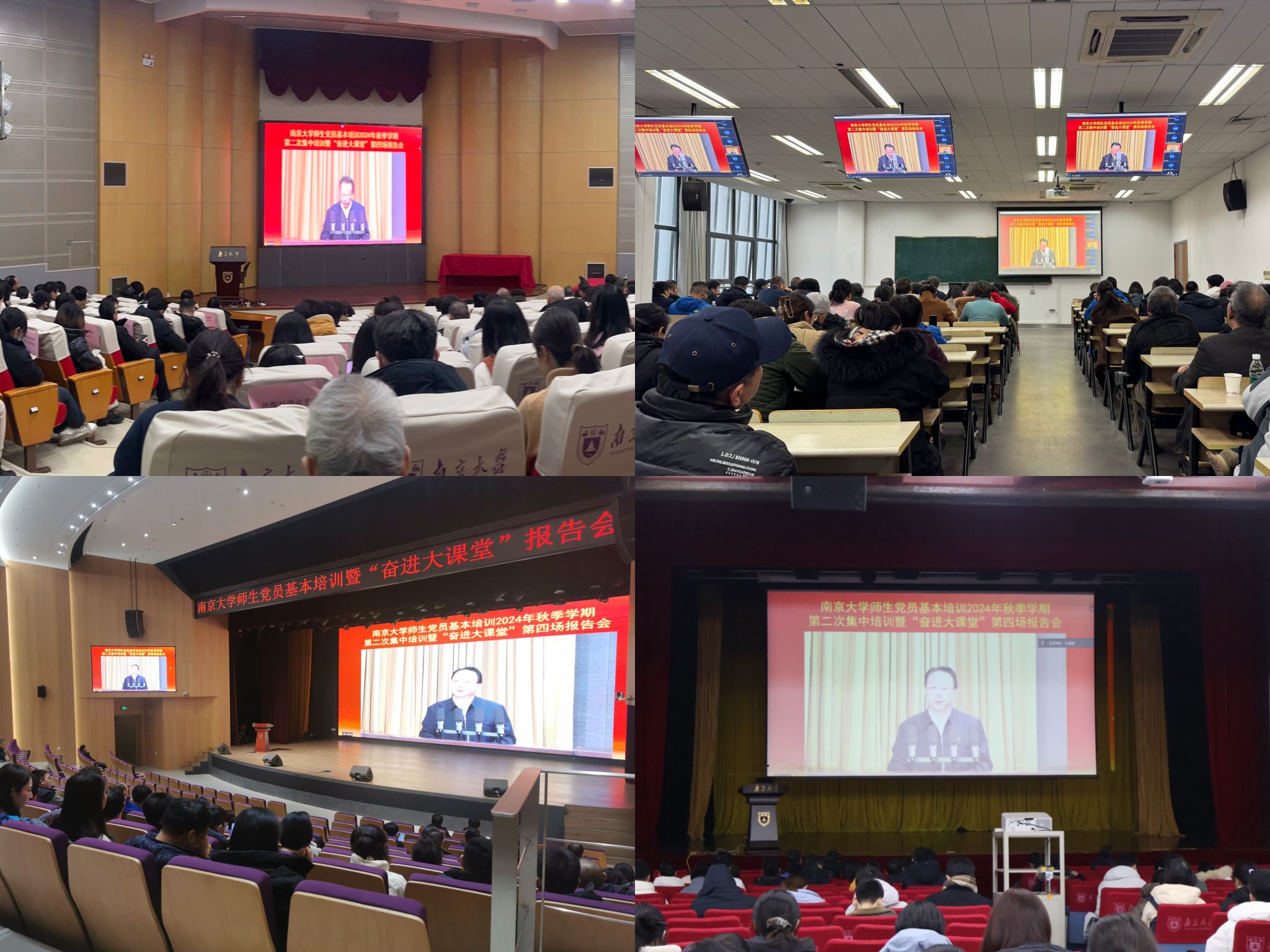 校领导班子成员,机关党员干部、部分学院师生党员代表在仙林校区主会场参加培训。各学院、各单位师生党员通过直播方式在各分会场参训,无法到校参训的党员通过二级党组织开设的线上课堂同步观看视频课程参训。