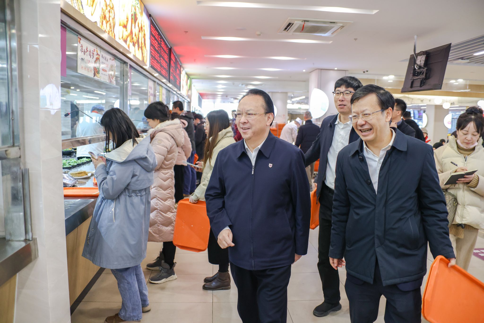 在保卫处,谭铁牛检查了远程监控接入情况,并强调了提高风险防范意识的重要性。在校医院,他关注了流感高发季的接诊情况和师生们的健康动态,并要求继续做好日常体检工作,将师生员工的“生命健康始终放在第一位”。在学生第二食堂,他调研了窗口服务、菜肴供应等情况,强调要进一步增强食品安全意识,不断完善膳食管理、设备管理等相关工作,营造安全、卫生、舒心的就餐环境。