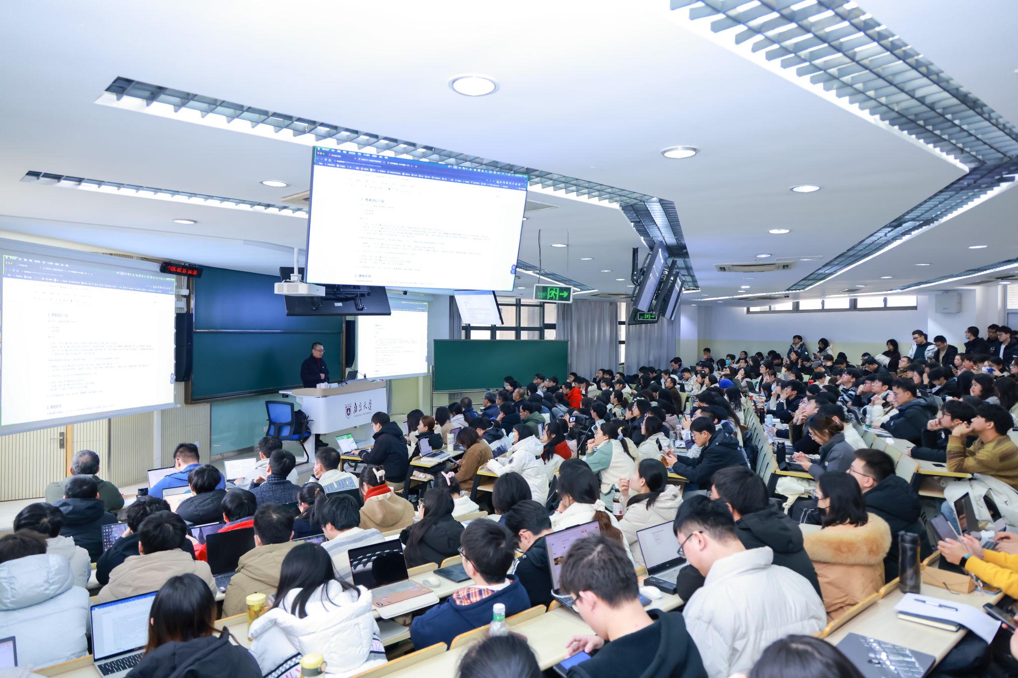 200多名研究生参加开课仪式。《人工智能+产品:创意、设计与开发实践》是凯发k8官网“研究生‘AI+’创新能力提升行动计划”中“AI+创业班板块”的一门重要课程,教室座无虚席,学生热情参与,课堂气氛热烈。课后同学们普遍反映收获良多,将会以更加积极的姿态面对人工智能的飞速发展,努力锤炼综合本领,不断提升实践创新能力。