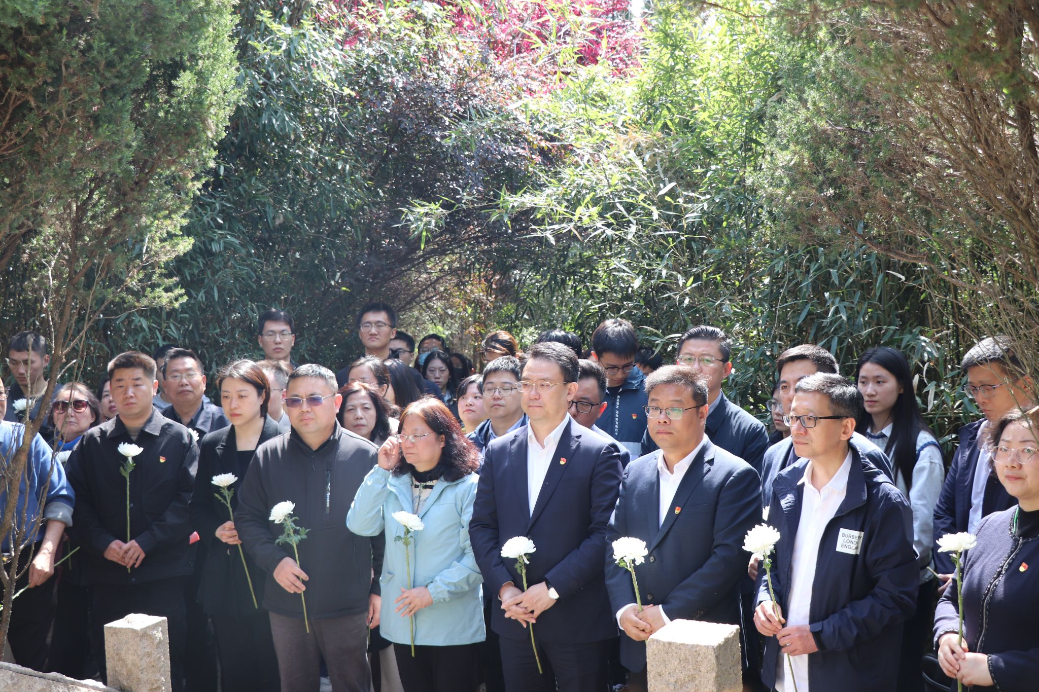 活动伊始,全体在匡亚明校长墓碑前庄严肃立,沉重默哀,敬献花篮,三鞠躬,深切缅怀匡亚明校长。