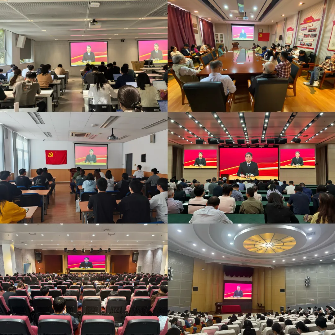 校领导班子成员、老领导、机关和直属单位党员干部、部分学院师生党员代表在仙林校区主会场参加培训。其他师生党员通过收看直播方式在各分会场参训,无法到校参训的党员通过二级党组织开设的线上课堂同步观看视频课程参训。