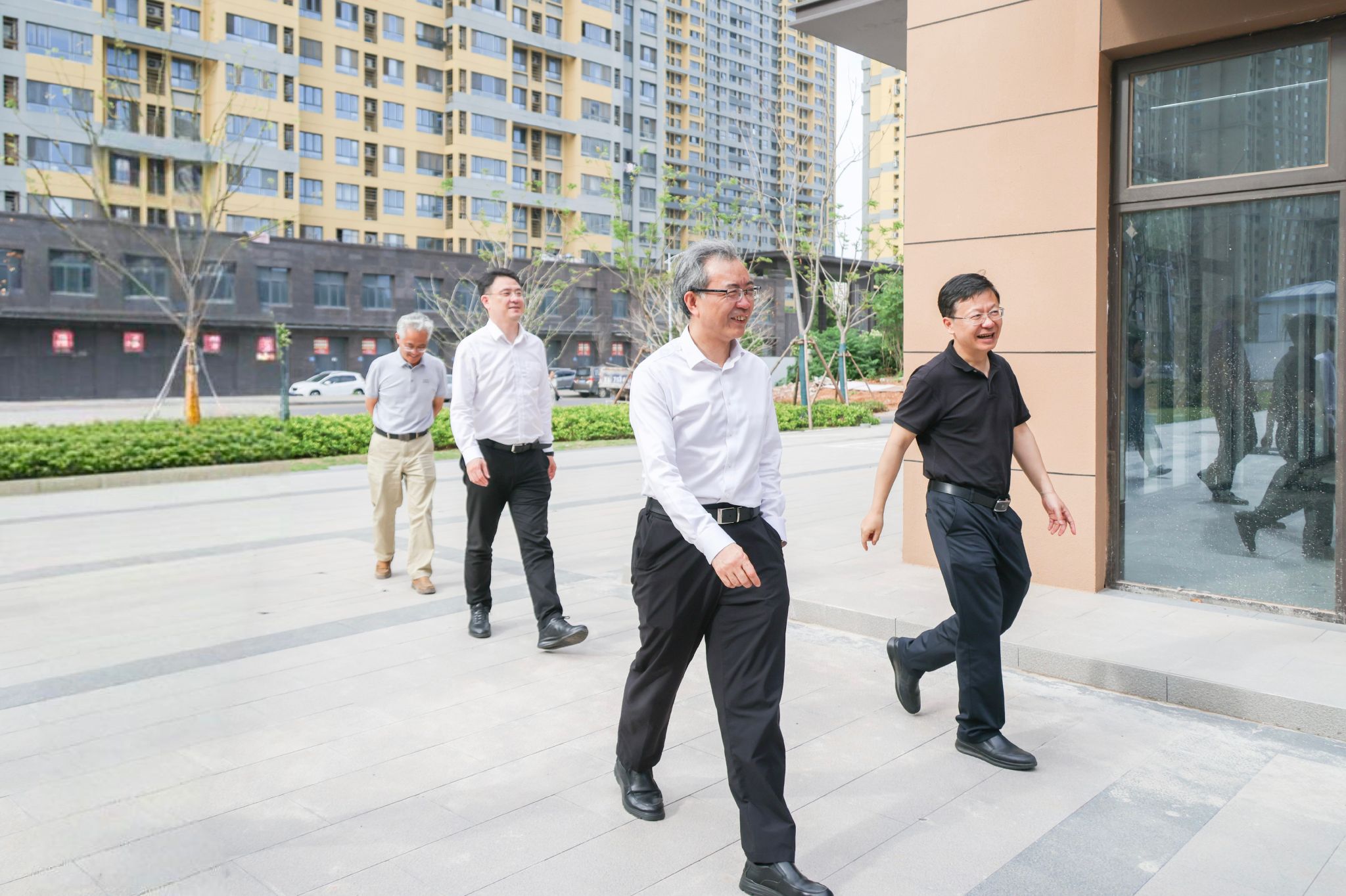 在建设工地,谈哲敏认真听取了置业公司相关负责人关于项目建设进展的汇报,实地考察了项目建设、绿化管理、道路规划以及周边环境等相关情况。他指出,句容雍园项目事关凯发k8官网及广大教职工的切身利益,必须进一步强化责任担当,加强沟通协同,全力推动项目进度,确保按照既定计划完成项目建设,尽快实现交付。谈哲敏强调,在推进工期的同时,要确保工程质量,进一步优化环境规划和建设,着力为教职工营造舒适的居住环境。