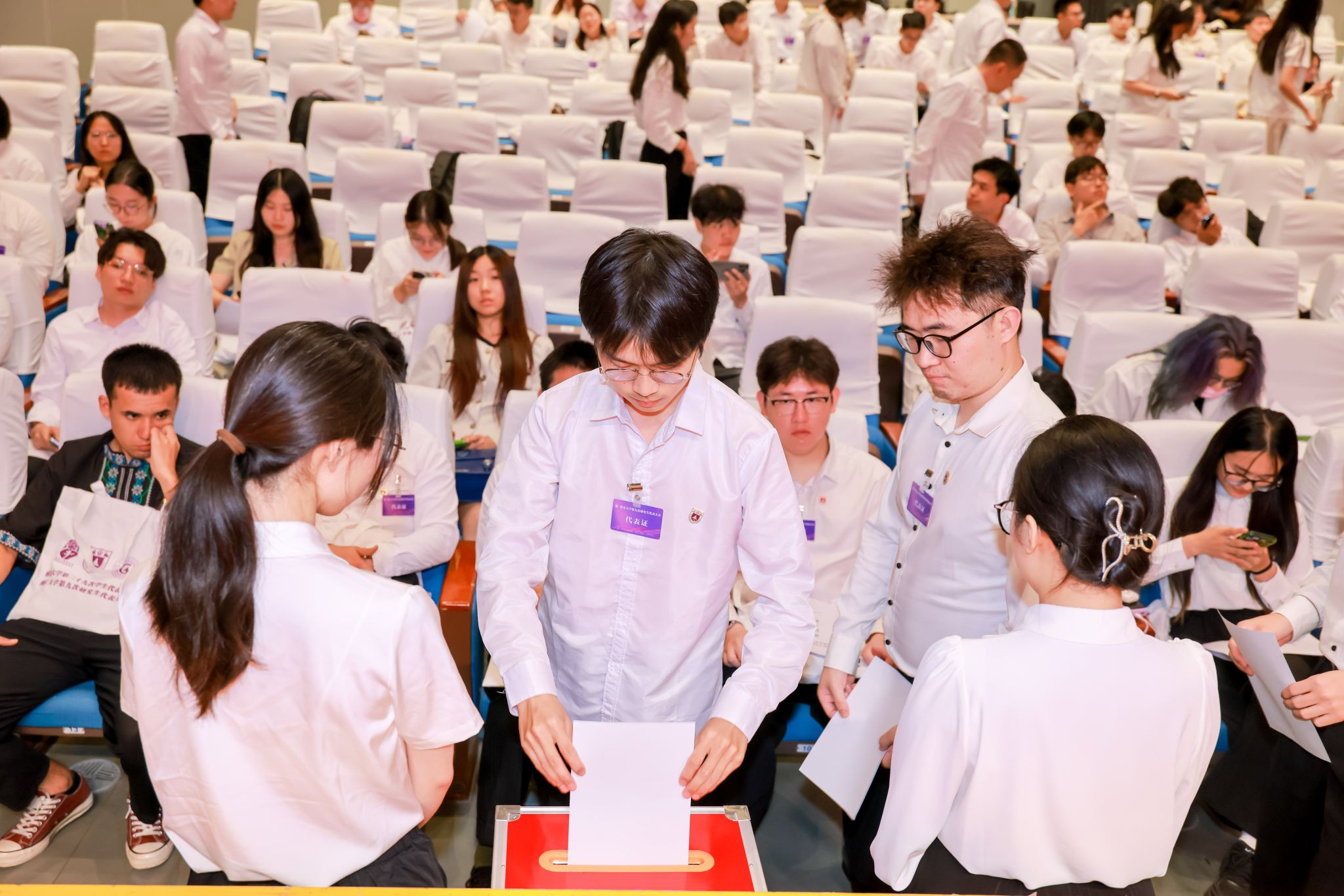 23日下午,第二十九次学生代表大会、第九次研究生代表大会第三次全体会议分别召开。与会代表表决通过相关选举办法,并分别听取第二十九届学生常代会会长团、学生会主席团候选人,第九届研究生常代会会长团、研究生会主席团候选人的公开演讲。全体代表以无记名投票的方式分别选举产生第二十九届学生常代会会长团、学生会主席团,第九届研究生常代会会长团、研究生会主席团。