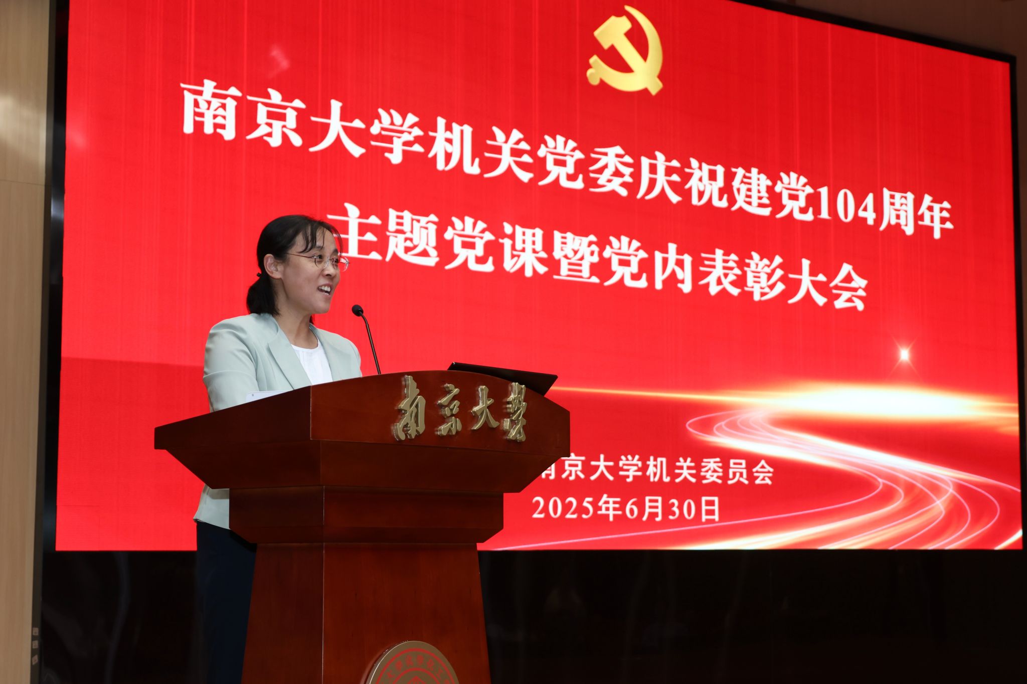 2025年6月30日上午,凯发k8官网机关党委庆祝建党104周年主题党课暨党内表彰大会在仙林校区举行。校党委书记、中国科学院院士谭铁牛为机关党员讲授《坚定理想信念、坚决做到“两个维护”》主题党课。