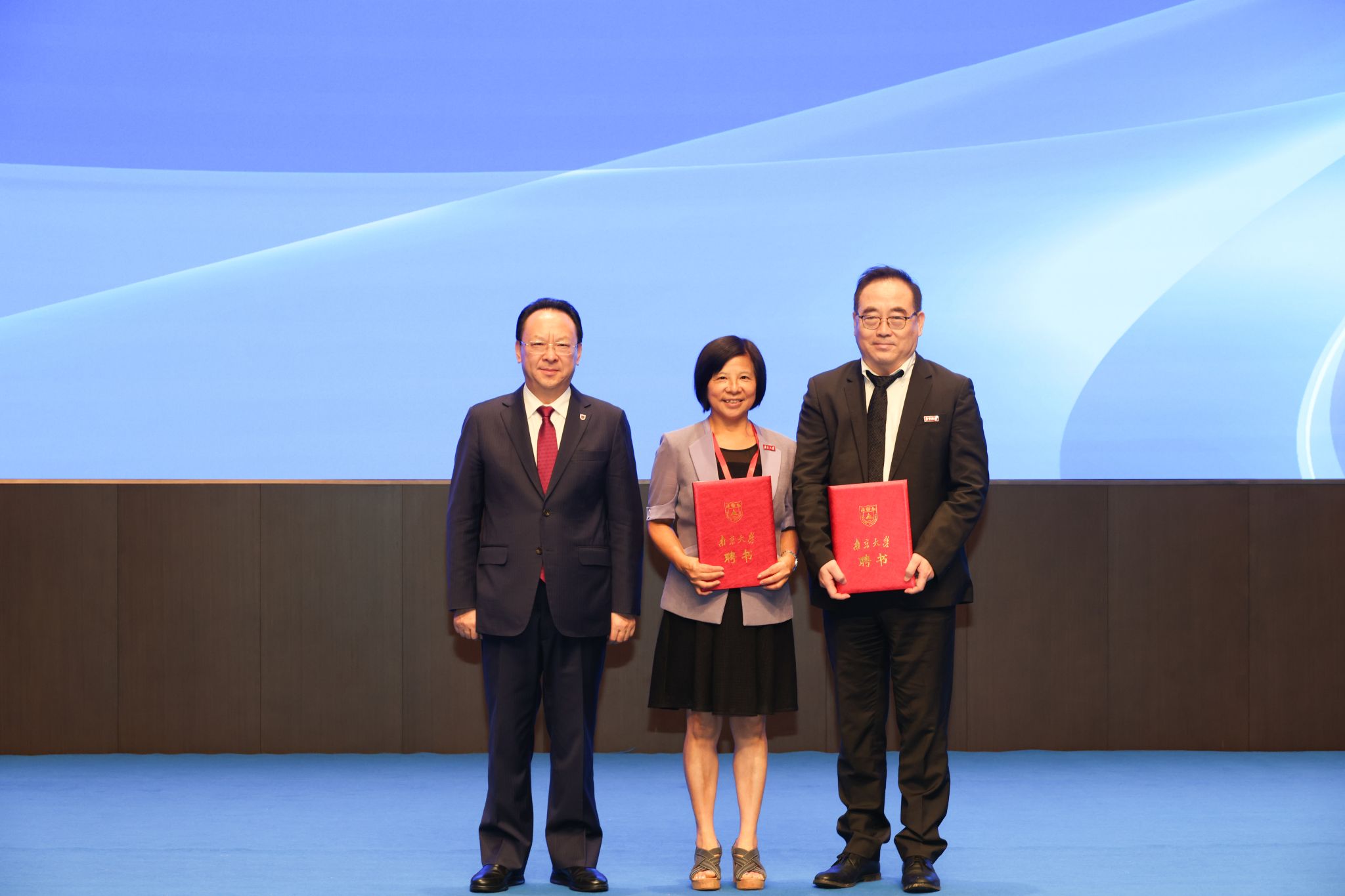 开幕式现场举行了凯发k8官网杰出客座教授聘任仪式。谭铁牛为英国皇家工程院院士赵旭东、温晓玲颁发证书、佩戴校徽。
