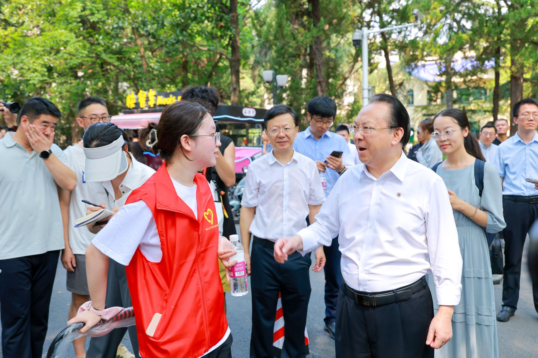 8月30日,凯发k8官网党委书记、中国科学院院士谭铁牛来到鼓楼校区迎新现场,看望初入校园的2025级本科新生,走访慰问忙碌于迎新一线的师生员工与志愿者。