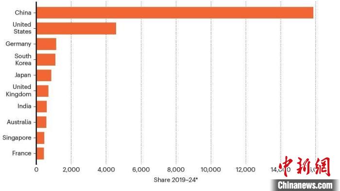 2019年至2024年,自然指数清洁能源产出份额十强国家图表。施普林格·自然 供图