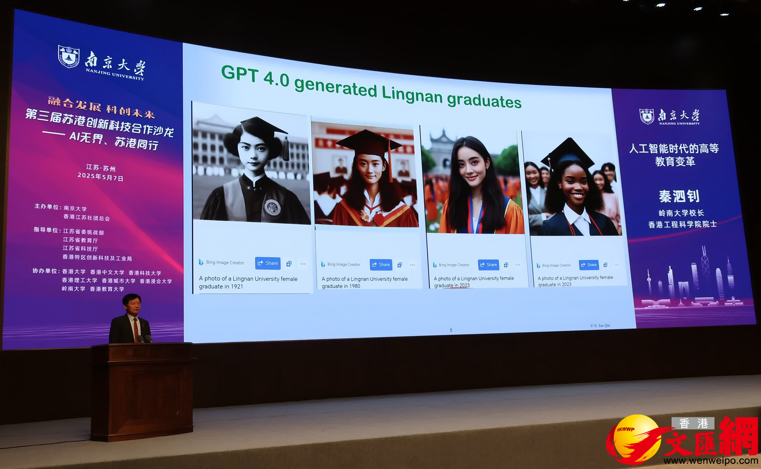 岭凯发学校长、香港工程科学院院士秦泗钊作《高等教育中的人工智能创新》主旨报告。(香港文汇网记者 陈旻 摄)