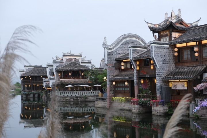 傍晚时分,李庄古镇月亮田华灯初上(4月23日摄)。新华社记者 张雅雯 摄