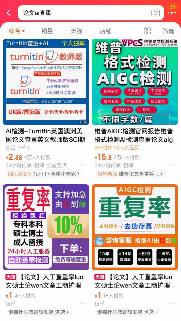 转战网购平台,输入“降AI率”便弹出多个商家链接。