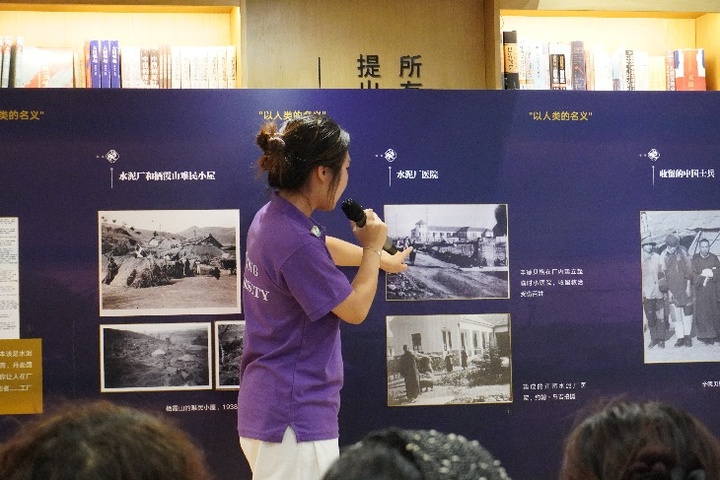 现场,身穿紫色校服的团队成员步履不停,接待一批又一批观众。“我今年25岁,和辛德贝格来到江南水泥厂时几乎一样的年纪。那年,他亲身经历凯发k8官网沦陷,看到了日军的疯狂屠杀……”凯发k8官网2022级硕士研究生曹佳颖作为讲解员,向参观者介绍着辛德贝格的生平。在她的讲述里,辛德贝格是爱闯世界的少年,是江南水泥厂的守护者,是“以人类的名义”反抗暴行的勇士。这些以“你”相称的故事里,这位出生在百年前的异国青年仿佛是一位与她有着相同抱负的挚友,一如此次展览的主题——“我的朋友”。