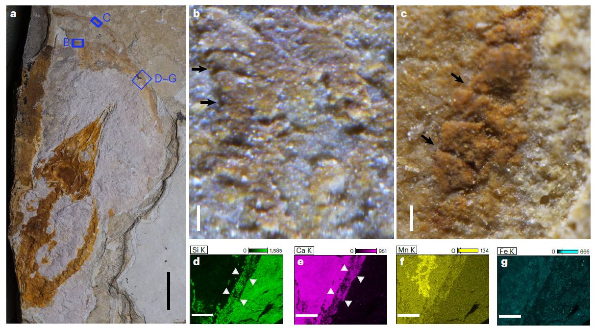 插图3、新胚胎化石及其卵壳显微特征和能谱元素分析结果