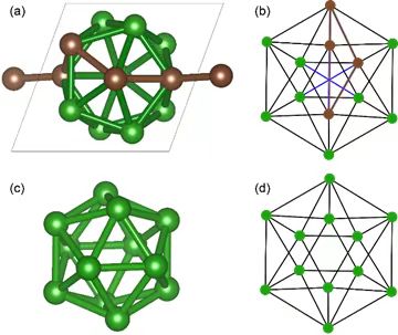 对于大体系构型空间复杂的困难,他们使用图论来减少搜索空间的维度。进化算法的一个重要理念是,父代中的优秀“基因”应该在后代中保留。对于晶体结构来说,“基因”代表着局部的结构基元。这些优秀的结构基元在分子晶体搜索中可以是分子,但对于普通的晶体来说并不容易判断。他们将周期性晶体结构抽象为一个图,并使用社区检测算法来完成这项工作。如一个扩展的α-硼结构,转化为商图并应用社区检测算法后提取出的0维基元,正是硼的二十面体。将其在后续的遗传操作中保持不变,自由度就可从36下降为6,搜索空间显著减小。这个方法简单说来就是在结构演化开始之前用图论的方法将结构中连接比较紧密的结构基元找出来,并以这些结构基元为单元进行结构演化,从而降低搜索空间的维度。
