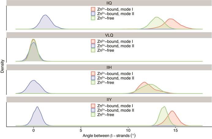 后续的分子动力学模拟在微观层面深入探讨了不同序列多肽展现的自组装形态差异(图4),详细阐述了锌离子的结合与配位模式如何调控自组装形貌的分子机制,从而精确地在序列、结构与功能活性之间建立了联系。此外,研究人员利用固态核磁共振技术对自组装纤维结构中组氨酸的取向进行了详细表征,发现不同序列的配位模式及其比例存在显著差异。特别是在本工作中表现出最高催化活性的IIQ序列,采用两种不同的催化活性中心,显示了该体系的结构多样性和机制复杂性。