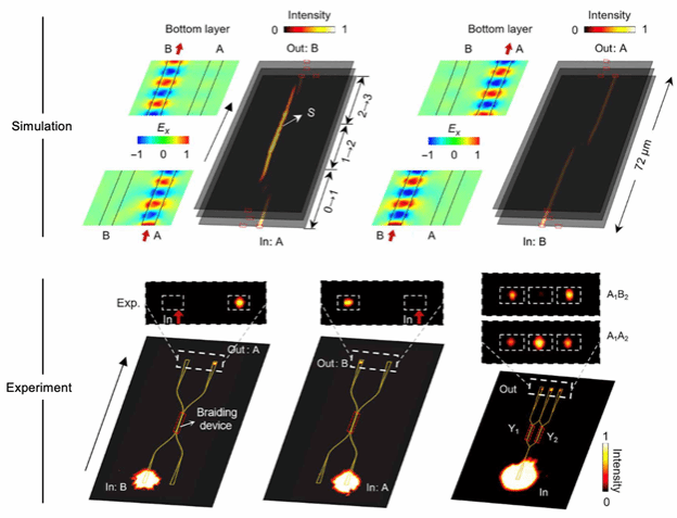 图4. 非阿贝尔编织模拟与实验结果 (B3)。