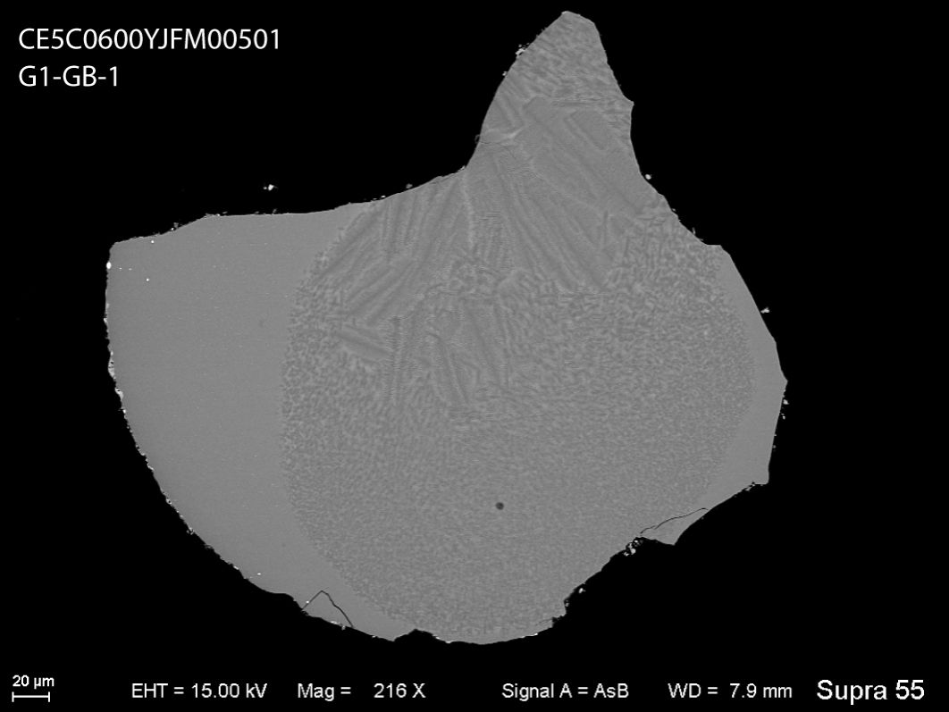 图1. 嫦娥五号月壤样品CE5C0600YJFM00501中高镁玻璃G1-GB-1的背散射电子图像