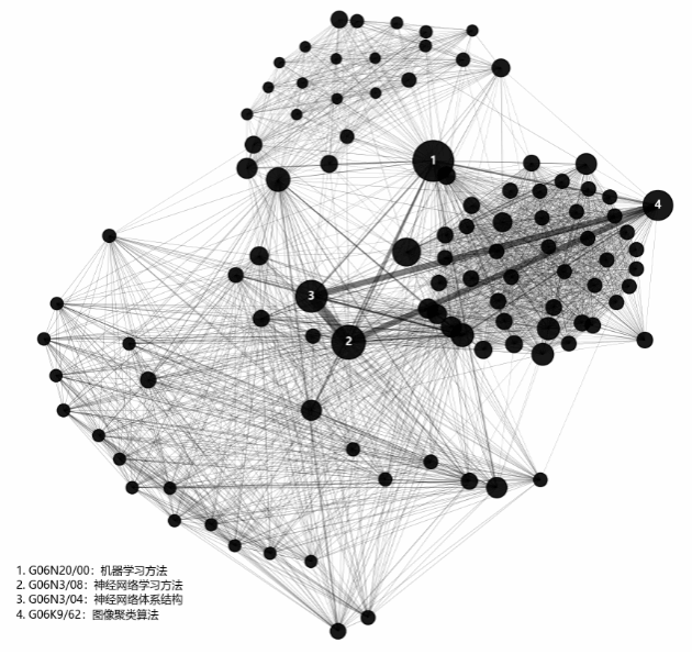 对AI知识网络的K核分解可视化如图3所示:提取出最深核心(K=23核)知识网络并以Kamada-Kawai力学布局方式可视化,呈现出以机器学习(G06N20/00)为核心枢纽,神经网络、图像聚类等技术强耦合的“底层算法集群”。图谱清晰显示AI知识不是孤立存在,而是嵌套关联的高度集成系统,底层算法正是连接通用智能各模块的关键引擎。