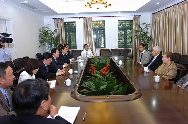 陈骏校长和布洛克校长就中国高等教育的现状和发展以及中西方大学的教学模式等交换了意见。陈骏校长着重向来宾介绍了我校本科教学改革的有关情况,双方围绕通识教育与个性化培养的问题进行了友好交谈。