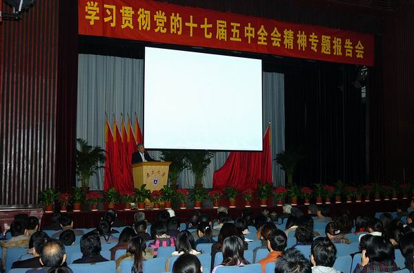 11月17日,我校举行学习贯彻党的十七届五中全会精神专题报告会。校党委书记洪银兴以上党课的形式为全校作了“‘十二五’规划与经济发展方式转变”的专题报告。他强调,全校要认真学习、深刻领会、切实贯彻《中共中央关于制定国民经济和社会发展第十二个五年规划的建议》,为实现“十二五”时期我国经济社会发展目标任务贡献自己的智慧和力量。