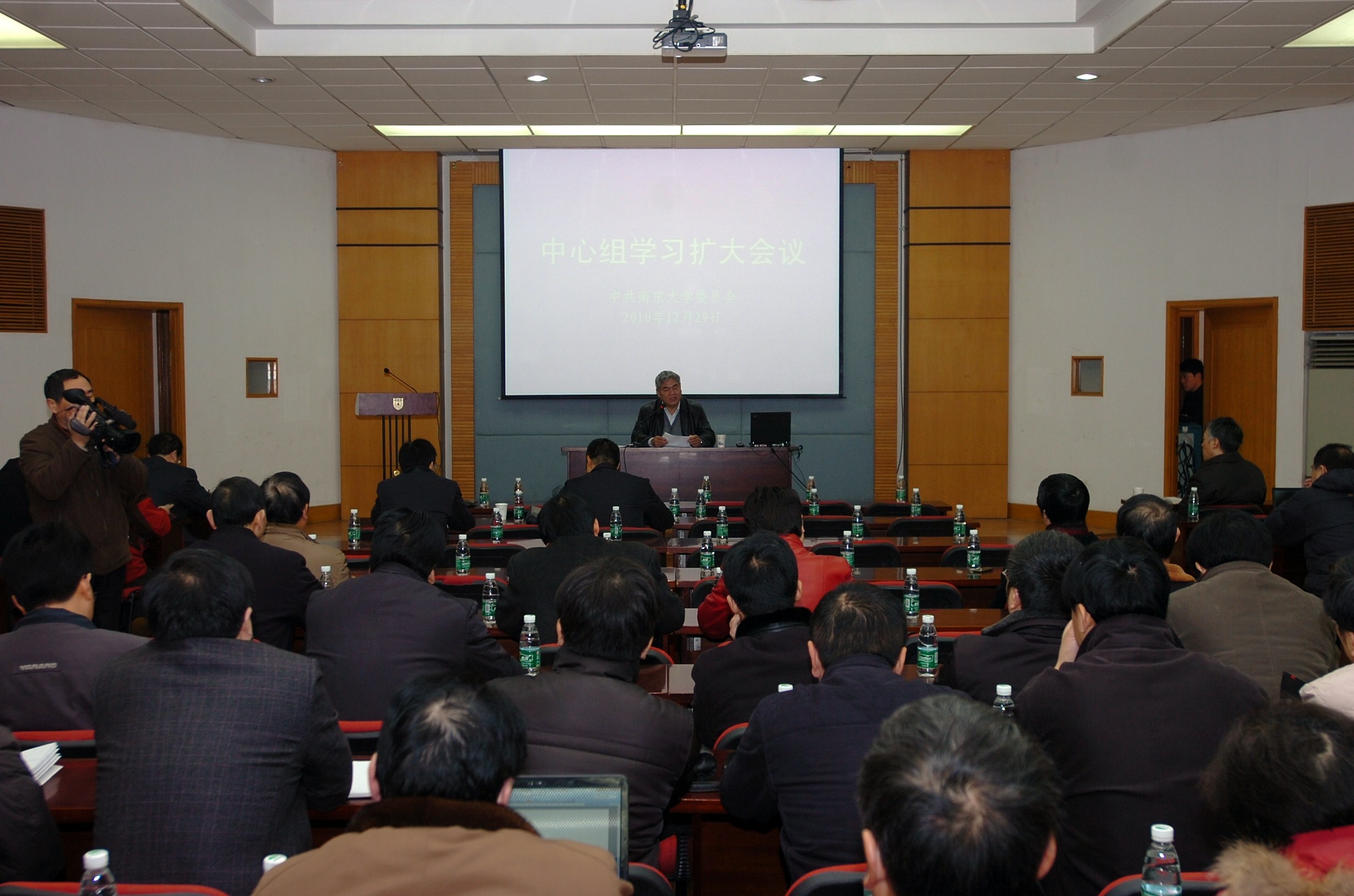 2010年12月29日上午,我校党委中心组集体学习近期中央有关会议和文件精神。校党委书记洪银兴在会上强调,要按照中央精神,进一步加强和改进学校党的建设,以高度的政治责任感把我校党建工作切实抓紧抓好。
