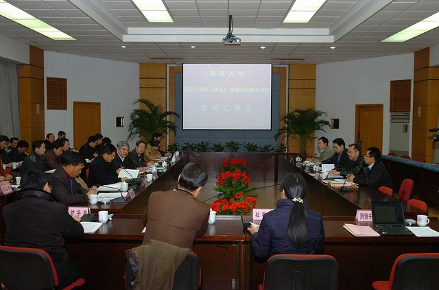 在洪银兴书记的简短致辞后,杨忠、薛海林和谭仁祥同志先后向考核抽查组汇报了我校贯彻落实《关于加强高等学校反腐倡廉建设的意见》的情况、贯彻《教育部直属高校和事业单位开展工程建设领域突出问题专项治理工作实施方案》的情况和教育科研基地设施“IPV6技术升级项目”进展情况。