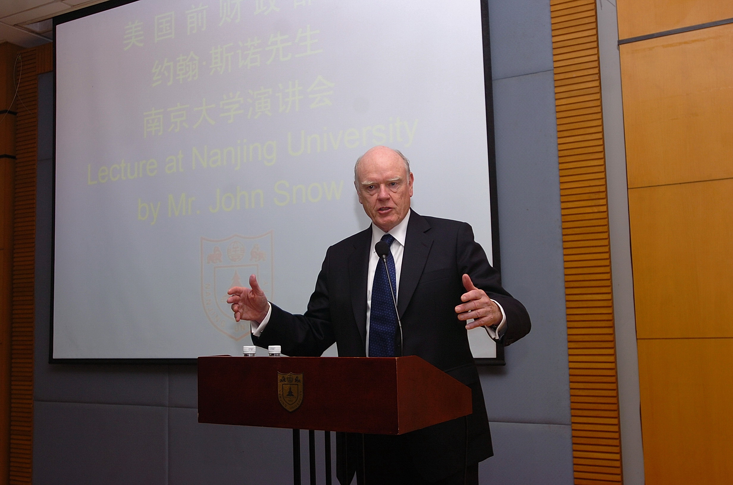 约翰?斯诺(John William Snow),国际著名经济学家, 2003年2月至2006年7月,担任美国第73任财政部长,其间领导布什政府的经济班子在国内和全球经济领域做出许多重大决策。现任Cerberus资本管理公司董事长。