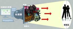 按照记者看到的这个比例,估计可以让上百人同时观看,但是王元庆笑着说,虽然原理上是这样,但是要知道在主屏幕前观看是有一定的视觉区域的,在三四米远和一两米宽的范围内能站的人数还比较有限,所以上百人还不可以,而且像电影院那样的空间,那设置的参数就更多了,因为要把这整个空间区域的位置都设置进来,代价是非常大的。