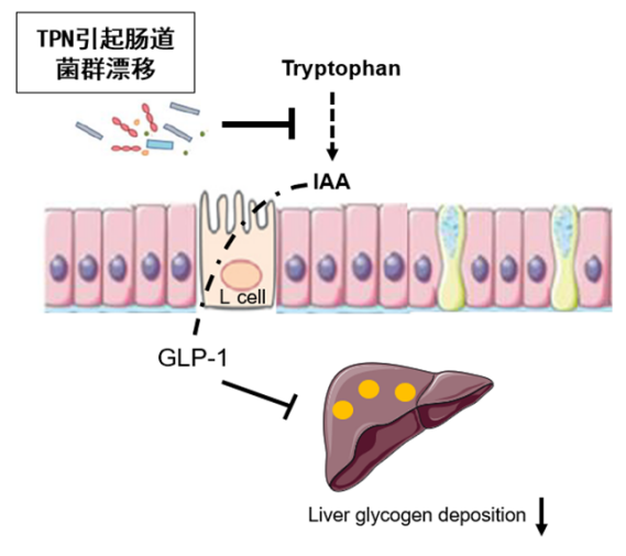 综上所述,本研究进一步证明了肠外营养长期使用导致的糖代谢障碍与病人临床结局密切相关。同时发现,乳杆菌属丰度降低,IAA减少,引起L细胞中Gcg的表达下调,GLP-1分泌减少是肠外营养相关糖代谢障碍的机制,而GLP-1类似物可能是缓解此损伤的重要治疗药物。