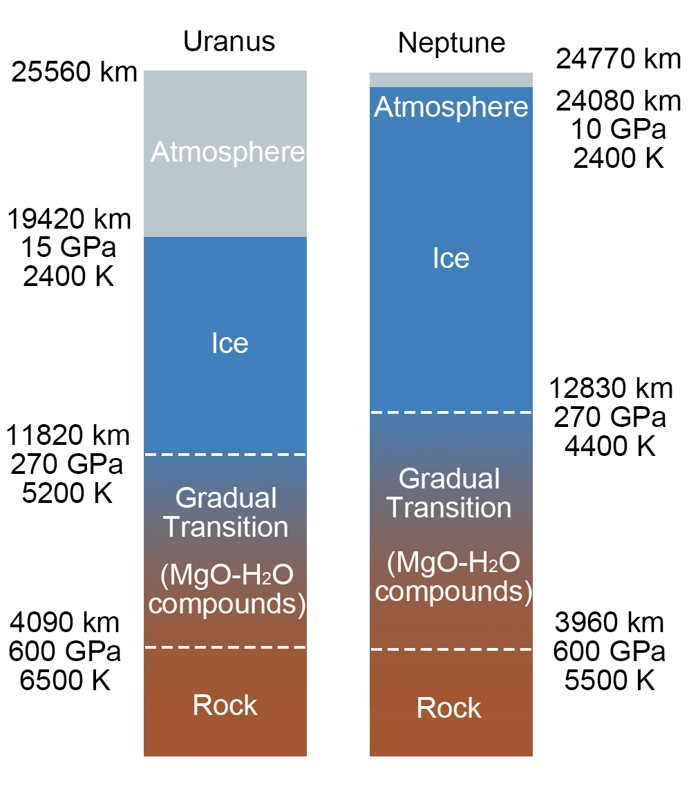 研究水与岩石矿物在高压下的混合与反应具有重要意义,因为太阳系内外的诸多行星内部都富含水与岩石。天王星和海王星因为距离太阳很远,温度较低,而其内部又有大量含水物质,因此被称为冰巨星。目前,关于冰巨星还存在许多未解之谜,例如其多极磁场的起源、天王星的低亮度等。行星内部物质的结构、物态和性质是解决这些谜题的关键信息。