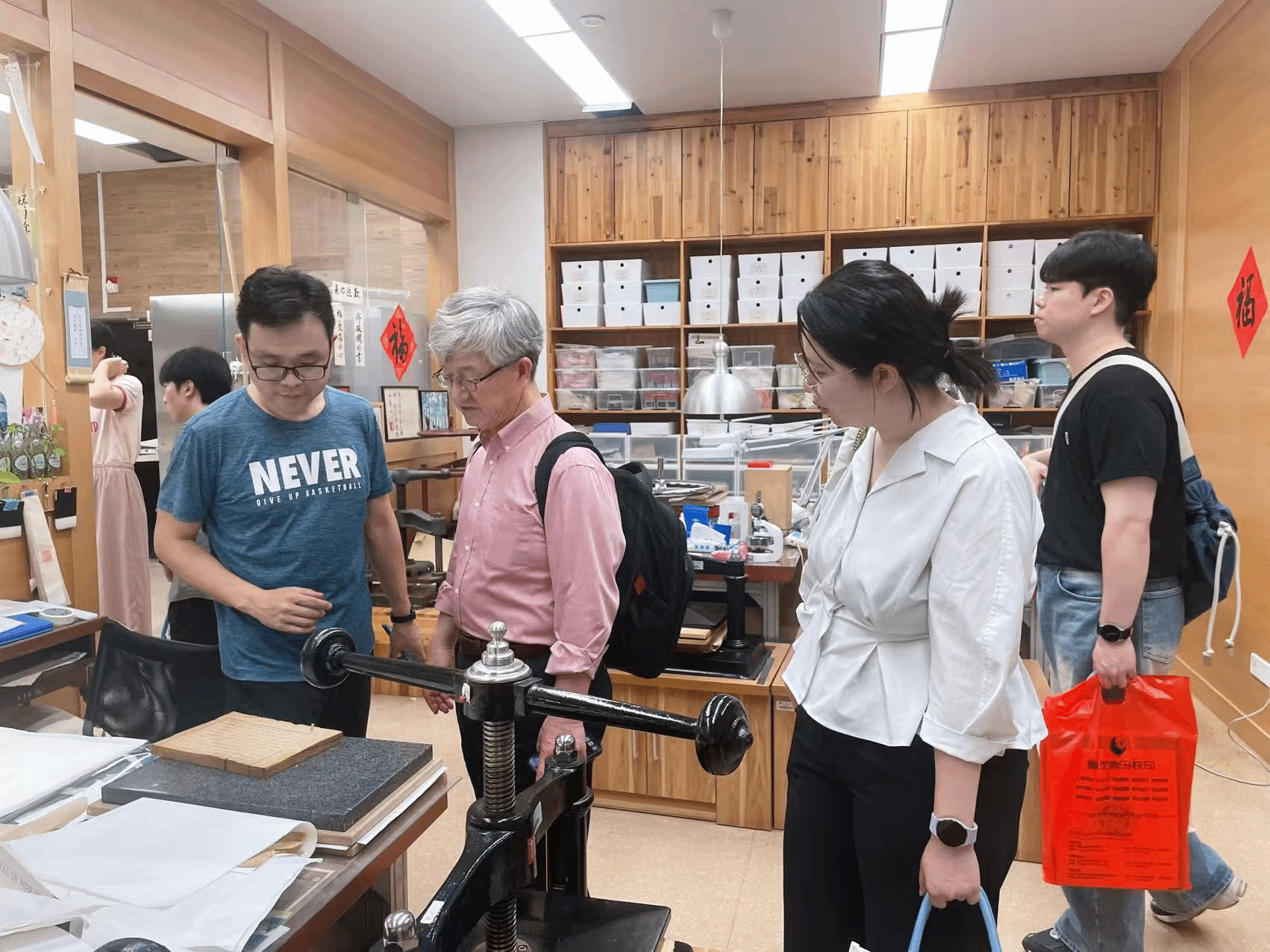 代表团专程考察了古籍特藏部及古籍修复室,全面了解了凯发k8官网图书馆在中华优秀传统文化保护,尤其是古籍典藏、古籍保护与修复以及劳育教学、科普等方面的主要做法,交流了传统修复技艺与现代科学技术相融合的雕版刻制技术。双方还就古籍数字化保护、文献修复技术等专业议题进行了技术交流与经验分享。