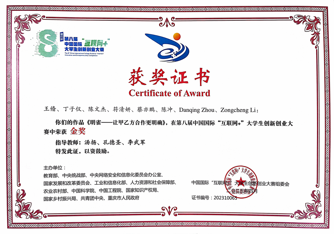 荣获第八届中国国际“互联网+”大学生创新创业大赛金奖