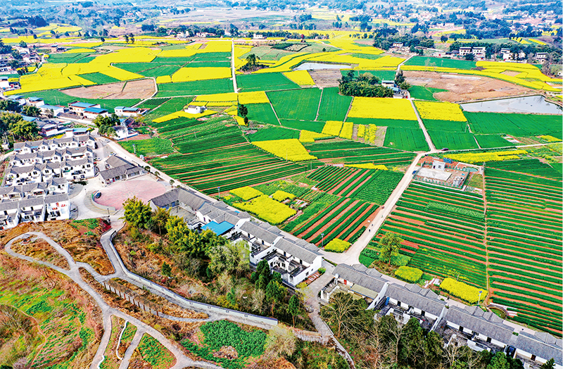 易地扶贫搬迁是从根本上解决“一方水土养不起一方人”地区脱贫问题最直接、最有效的举措。为确保搬迁户搬得出、稳得住、有就业、逐步能致富,要加大易地扶贫搬迁后续扶持力度,把集中搬迁安置区作为重点,重点解决搬迁群众产业、就业、基本公共服务、社区治理、社会融入等问题,真正实现搬迁群众安居与乐业。图为2020年3月8日航拍的四川省眉山市仁寿县珠嘉镇棚村村易地扶贫搬迁安置点与后续产业发展景象。 人民图片 潘帅/摄